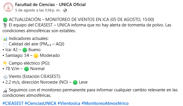 #CIEASEST#CienciasUNICA#VientosIca#MonitoreoAtmosférico
