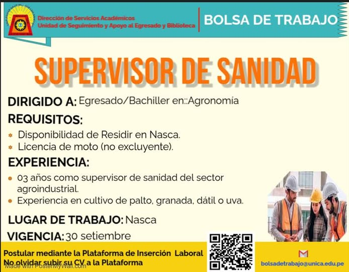 #OfertaLaboral | OFERTA LABORAL SUPERVISOR DE SANIDAD
