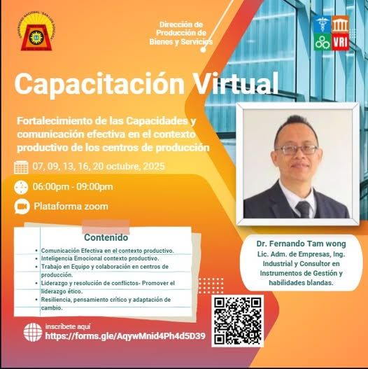 El Vicerrectorado de Investigación reafirma su compromiso con el fortalecimiento de capacidades y la mejora continua en el ámbito académico y productivo.