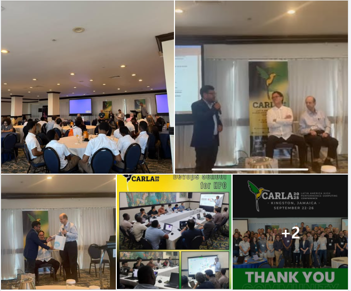 En el marco de la Escuela DevOps para HPC, realizada en Kingston, Jamaica como actividad previa a la conferencia internacional CARLA 2025, nuestra universidad tuvo una destacada participación en este encuentro que reúne a estudiantes, investigadores y profesionales en computación de alto rendimiento.