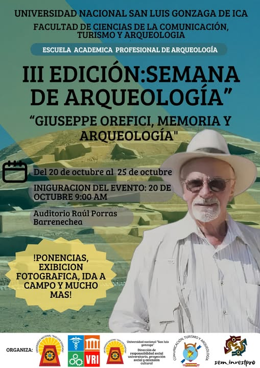 Bajo el lema “Giuseppe Orefici, Memoria y Arqueología”, este evento reunirá ponencias, exhibiciones fotográficas, salidas de campo y muchas actividades más.