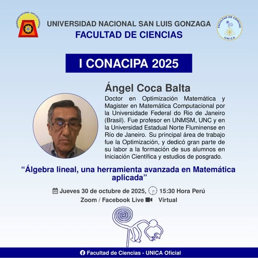 Te invitamos a conectarte y ser parte de esta inspiradora exposición en el marco del I CONACIPA 2025, organizada por la Facultad de Ciencias de la Universidad Nacional San Luis Gonzaga