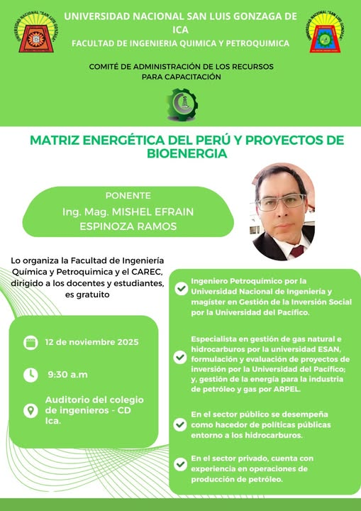 El CAREC (Comité de Administración de los Recursos para Capacitación), una entidad del MINEM, tiene el agrado de invitar a estudiantes y docentes de la Facultad de Ingeniería Química y Petroquímica al curso especializado: