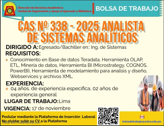 #OfertaLaboral | OFERTA LABORAL CAS N°338-2025 ANALISTA DE SISTEMAS ANALÍTICOS