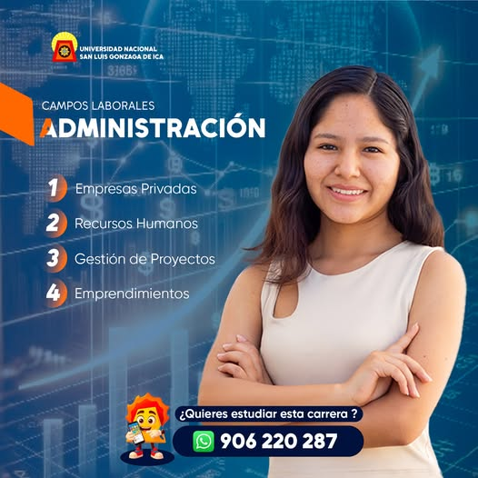 En la Universidad Nacional San Luis Gonzaga, te preparamos para liderar, gestionar y tomar decisiones estratégicas en cualquier organización. Tu formación te permitirá desenvolverte con seguridad en diversos sectores y construir una trayectoria sólida y competitiva 🚀📊