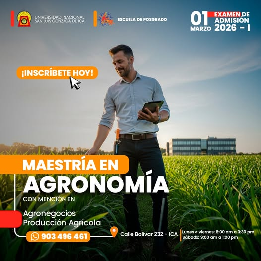 #UNICA#PosgradoUNICA#MaestríaEnAgronomía#EscuelaDePosgrado#Admisión2026#CienciasAgrarias#AgriculturaSostenible#Ica![]()