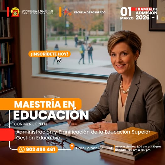 #UNICA#PosgradoUNICA#MaestríaEnEducación#EscuelaDePosgrado#Admisión2026#EducaciónSuperior#FormaciónDocente#Ica![]()