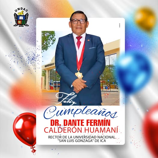 Desde la comunidad educativa de la Universidad Nacional Daniel Alcides Carrión le deseamos un Feliz Cumpleaños al 𝗗𝗿. 𝗗𝗮𝗻𝘁𝗲 𝗙𝗲𝗿𝗺𝗶́𝗻 𝗖𝗮𝗹𝗱𝗲𝗿𝗼́𝗻 𝗛𝘂𝗮𝗺𝗮𝗻𝗶, Rector de la Universidad Nacional «San Luis Gonzaga» de Ica, los mejores éxitos y parabienes en los días venideros. ![]()