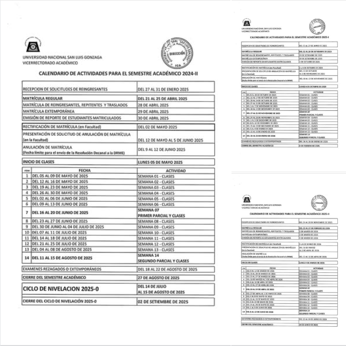 #DRME | La Dirección de Registro, Matrícula y Estadística les recuerda que, mediante la resolución rectoral N.º 562-R-UNICA-2025, se aprobó los calendarios de actividades para el semestre académico 2024-II, 2025-I y 2025-II, la cual puede ser consultada y descargada en el siguiente enlace: https://www.unica.edu.pe/…/2025/03/24/RR-562-2025.pdf, por lo que se les recomienda no dejarse sorprender por publicaciones en medios no oficiales de la universidad”.