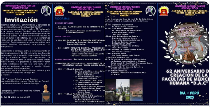 La Facultad de Medicina Humana «Daniel Alcides Carrión» se complace en invitarte a celebrar nuestro 62° Aniversario.