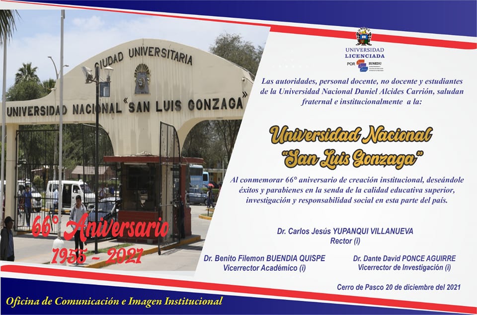 Hoy celebramos sus 66 años de enseñanza y de formar profesionales.¡Muchas Felicidades!Universidad Nacional «San Luis Gonzaga»
