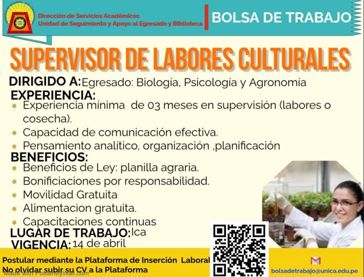 #OfertaLaboral | OFERTA LABORAL SUPERVISOR DE LABORES CULTURALES