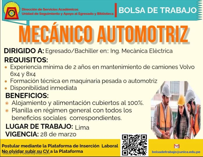 #OfertaLaboral | OFERTA LABORAL MECÁNICO AUTOMOTRIZ