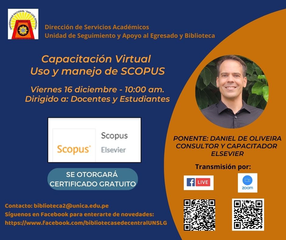 Estimados(as) docentes y estudiantes están invitados a participar en la capacitación virtual sobre la base de datos Scopus