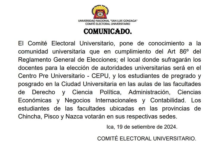 #CEU | El comité electoral universitario se reunió ayer a las 3:30, con los miembros de la ONPE, con el fin de coordinar y ultimar detalles para la implementación de los locales de votación y el despliegue de los materiales electorales a los diversos locales de votación para las elecciones que se realizarán este miércoles 25 de setiembre en la Universidad Nacional San Luis Gonzaga.