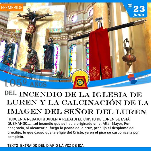 #Efemérides | Un día como hoy se cumplen 105º Años del Incendio de la Iglesia de Luren y la Calcinación de la Imagen del Señor del Luren.