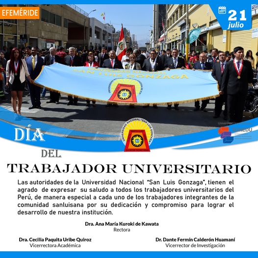 #Efemérides | Las autoridades de la Universidad Nacional “San Luis Gonzaga”, tienen el agrado de expresar su saludo a todos los trabajadores universitarios del Perú, de manera especial a cada uno de los trabajadores integrantes de la comunidad sanluisana por su dedicación y compromiso para lograr el desarrollo de nuestra institución.