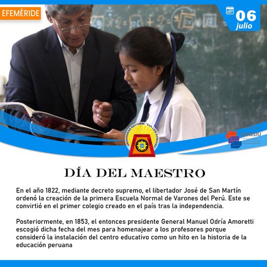 Posteriormente, en 1853, el entonces presidente General Manuel Odría Amoretti escogió dicha fecha del mes para homenajear a los profesores porque consideró la instalación del centro educativo como un hito en la historia de la educación peruana