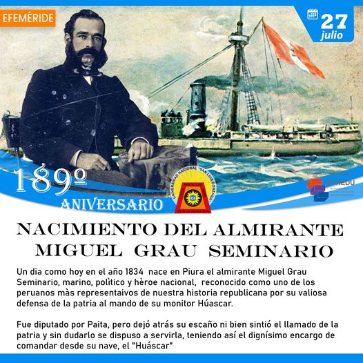 #Efemérides | 189º Aniversario del Natalicio del almirante Miguel Grau Seminario.