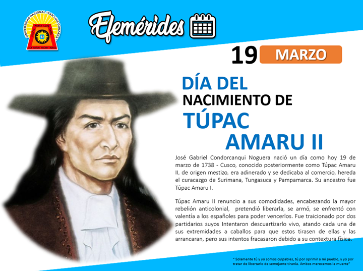 #Efemerides | #TúpacAmaru 283° aniversario del nacimiento de Túpac Amaru ll.