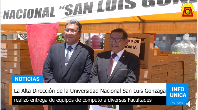 Se realizó la entrega de modernos equipos de cómputo a las diversas facultades de la Universidad Nacional San Luis Gonzaga, con la presencia del rector Dante Fermín Calderón Huamaní, el vicerrector académico José Ernesto Rojas Campos y los decanos de cada facultad.