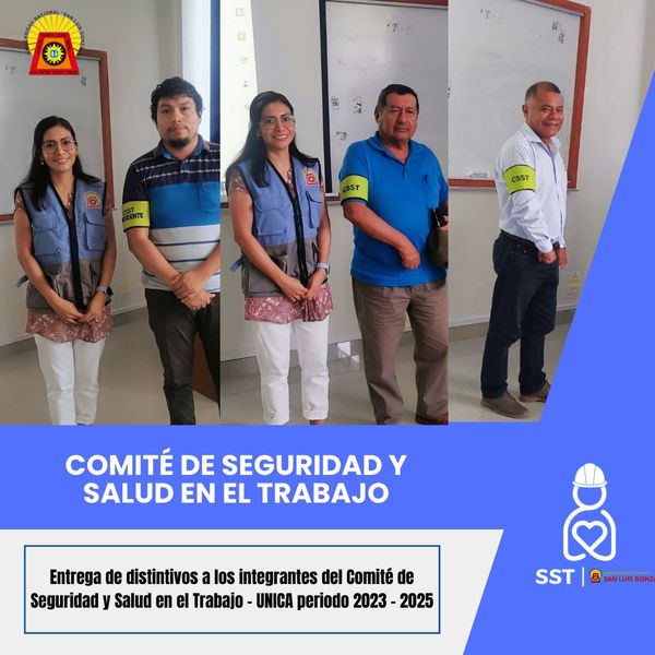 #SeguridadSaludTrabajo | #SST Ayer se llevó a cabo la ceremonia de instalación del Comité de Seguridad y Salud en el Trabajo de la Universidad Nacional «San Luis Gonzaga» para el periodo 2023-2025, conforme a lo establecido en la Ley N.° 29783 “Ley de Seguridad y Salud en el Trabajo”. El Comité fue instalado por la Dra. Sonia Guevara Sotelo, Responsable de la Gestión de Seguridad y Salud en el Trabajo.