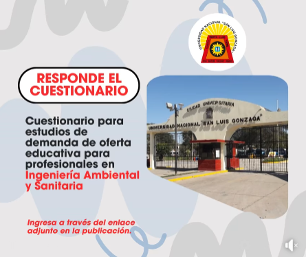 Ingeniero (a) la Facultad de Ingeniería Ambiental y Sanitaria a través de la Oficina de Gestión de la Calidad los invita a participar del Estudio de Demanda Educativa de Programas de Maestría; para lo cual tenga la gentileza de llenar el presente cuestionario.