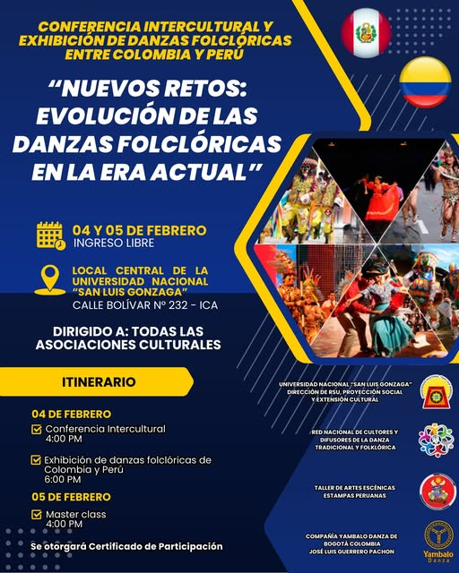 CONFERENCIA INTERCULTURAL Y EXHIBICIÓN DE DANZAS FOLCLÓRICAS DE COLOMBIA Y PERÚ ![]()