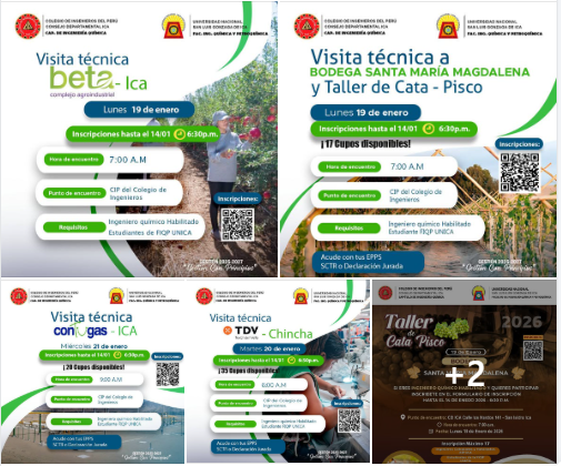 ¡Atención ingenieros y estudiantes! La Facultad de Ingeniería Química de la UNICA y el Capítulo de Ingeniería Química del CIP CD ICA te invitan a participar en las actividades programadas por nuestro aniversario. ¡Capacitación, aprendizaje en campo y deporte en un solo lugar!