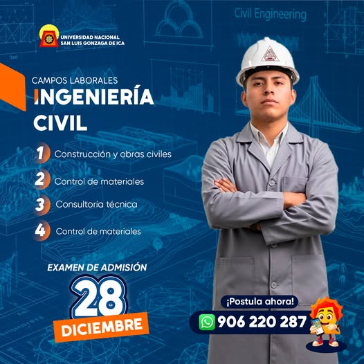 #UNSLG#IngenieríaCivilUNSLG#ConstruyendoElFuturo#DesarrolloUrbano#ExamenDeAdmisión2025II#UniversidadNacionalSanLuisGonzaga#Ica#TuFuturoEmpiezaAquí#PostulaYa#InscríbeteYa