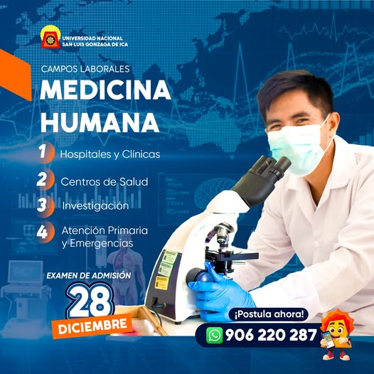 En la Universidad Nacional San Luis Gonzaga, te formarás con excelencia académica, práctica clínica, investigación y valores éticos para diagnosticar, prevenir y tratar enfermedades con un enfoque humano y profesional