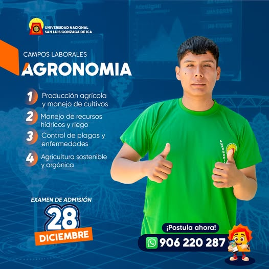 En la Universidad Nacional San Luis Gonzaga, te formarás con sólidos conocimientos científicos, práctica de campo e innovación para mejorar la producción agrícola, cuidar los recursos naturales y contribuir a la seguridad alimentaria del país