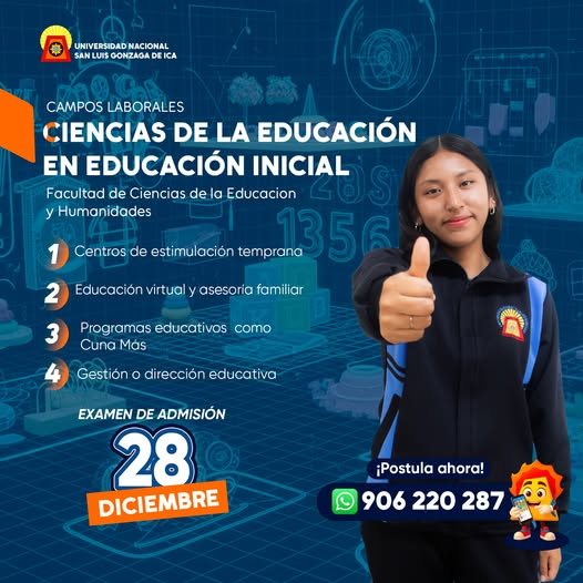 En la Universidad Nacional San Luis Gonzaga, te prepararás con vocación, pedagogía, práctica formativa y valores humanos para acompañar el desarrollo integral de niñas y niños en sus primeros años, sembrando aprendizajes que duran toda la vida