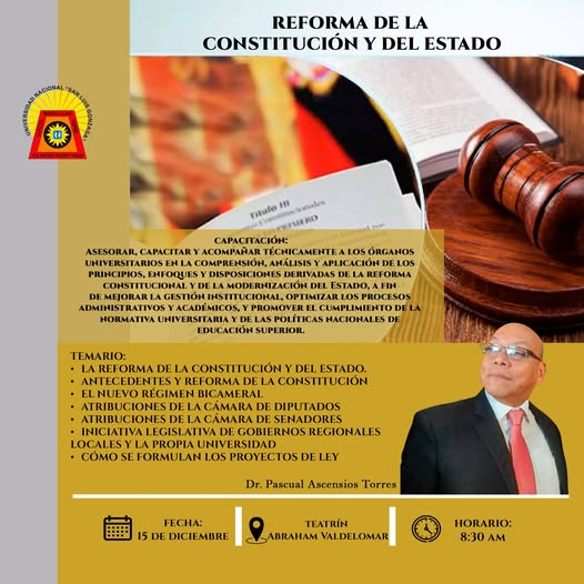 INVITACIÓN | La Universidad Nacional San Luis Gonzaga tiene el agrado de invitar a la comunidad universitaria a participar en la Jornada de Capacitación: “Reforma de la Constitución y del Estado”, dirigida a las autoridades, funcionarios y órganos universitarios, con el propósito de fortalecer sus competencias en la comprensión, análisis y aplicación de los principios y disposiciones vinculadas a la reforma constitucional y a la modernización del Estado.